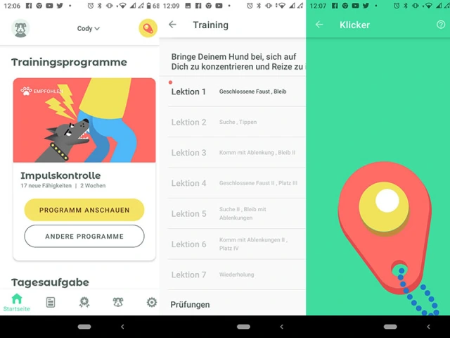 In der Grundansicht finden Sie Trainingsprogramme, beispielsweise Impulskontrolle. Dieses Training enthält sieben Lektionen (mit Wiederholung).