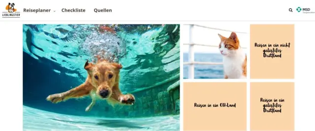 - petsontour.de vereint wissenswertes zu Länderbestimmungen, Krankheiten, Impfungen. Ausserdem finden Sie einen Reiseplaner, bei dem Sie das Reisemittel (Auto, Bahn, Flugzeug) und das Land auswählen können. Auch eine Checkliste mit EU-Bestimmungen (Heimtierausweis, Tollwutimpfung etc.) findet sich.