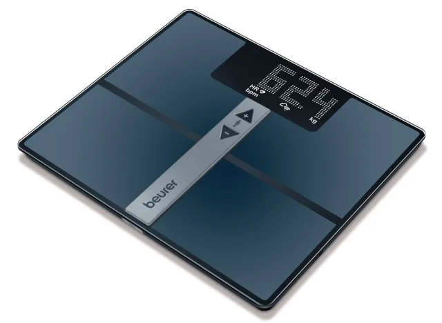 Die Diagnosewaage BF 980 WIFI von Beurer kann gezielt Gesundheitsdaten auslesen. Dreh- und Angelpunkt ist die App beurer HealthManager Pro, die es kostenlos für Android- und iOS-Geräte gibt. Nebst der Datenverwaltung können mit ihrer Hilfe auch Auswertungen bezüglich Verlaufsgrafiken oder Messwerttabellen erstellt werden, um so schnell einen Gesamtüberblick über den Fitnesszustand zu erlangen. Ausser einer umfangreichen Körperanalyse, bei der Gewicht, Körperfett, Muskelanteil und BMI gemessen werden, führt die Körperfettwaage zusätzlich eine Herzfrequenzmessung durch. Die Diagnosewaage wird per Akku betrieben, aufladen lässt sich via USB-Port.