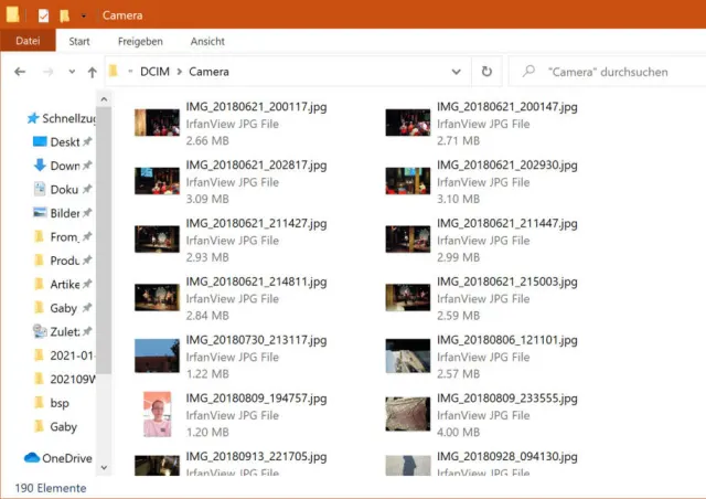 Zuerst muss ein Bild auf Ihrem PC landen. Hierfür sind keine Zusatzprogramme nötig. Stöpseln Sie Ihr Smartphone oder Ihre Kamera per USB-Kabel an Ihrem PC an. Bei Smartphones erscheint auf diesen meist eine Rückfrage, ob der Datenzugriff ab PC erlaubt ist. Lassen Sie dies zu, ist das Gerät bereit. Das Smartphone oder die Kamera erscheint im Windows-Explorer unter Dieser PC als Laufwerk. Jetzt haben Sie drei Möglichkeiten: