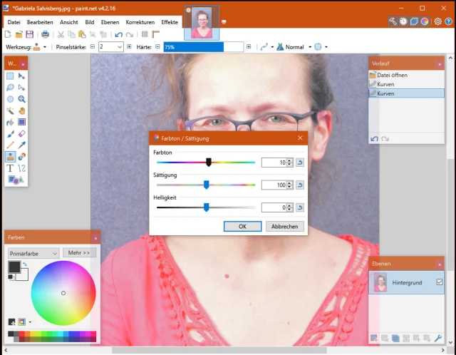 Bild 7: Paint.net bietet Helligkeits- und Farbtonkorrekturen