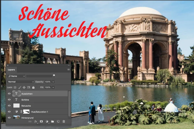 Quelle: PCtipp.chDas Kürzel steht für PhotoShop Document, und damit ist eigentlich alles gesagt. PSD-Dateien können Sie in den wenigsten Programmen direkt verwenden oder überhaupt nur importieren. Sie werden das Format jedoch schätzen, wenn Sie Ihre Fotos in Photoshop (Elements) bearbeiten. Falls Sie Texte hinzufügen, komplexe Retuschen vornehmen oder Bildteile kombinieren, dann spielt sich das auf mehreren «Ebenen» ab, Bild 6. Später können Sie jederzeit Änderungen an einer Ebene vornehmen, indem Sie beispielsweise einen Text editieren, ohne dass das darunter liegende Bild in Mitleidenschaft gezogen wird. PSD ist also das Format, mit dem Sie die retuschierten Bilder fürs Archiv speichern; für die Verteilung werden Sie jedoch eine Kopie im JPEG-Format herstellen.