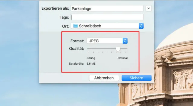 Quelle: PCtipp.chJPEG-Bilder können sehr hochwertig sein, wenn sie richtig gespeichert werden. Je stärker die Kompression, desto kleiner werden die Dateien – und desto mehr leidet die Bildqualität. Deshalb finden Sie im Sichern-Dialog für JPEGs fast immer auch eine Möglichkeit, um die Stärke der Kompression dem Verwendungszweck anzupassen, Bild 1.