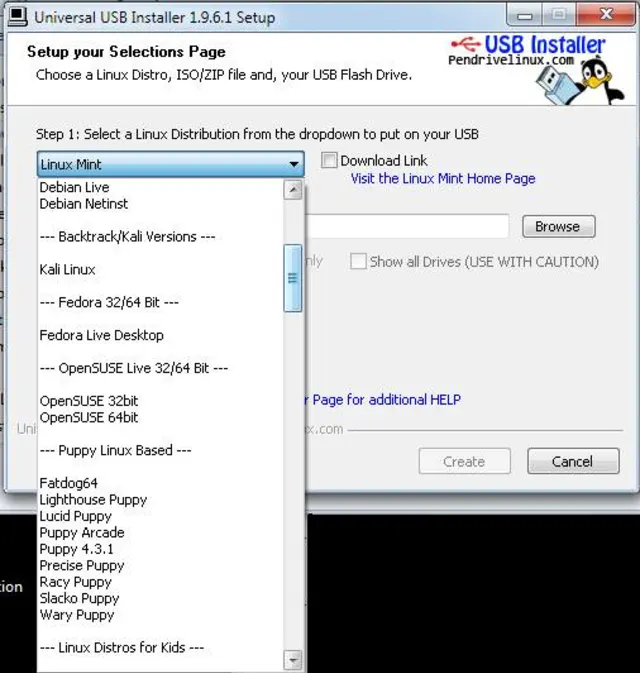 Diese Entscheidung war zum Glück nicht durch die Verfügbarkeit eines USB-Stick-Creators eingeschränkt. Der Universal USB Installer von pendrivelinux.com kennt sie nämlich alle.
