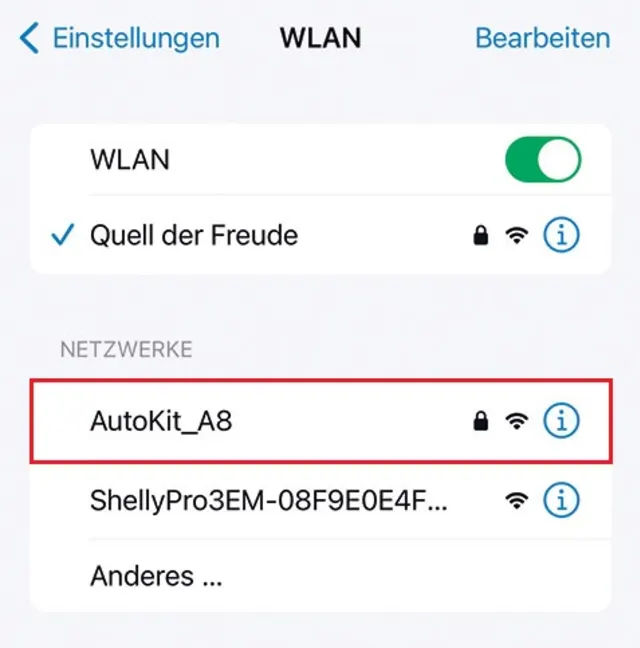 Öffnen Sie am iPhone die Bluetooth-Einstellungen. Wählen Sie anschliessend das Gerät Autokit_D68. Das wars.