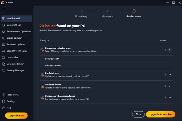 Die Pro-Version von CCleaner bietet hingegen diverse zusätzliche Features, mit denen die Software auch in einem selbstreinigenden Windows Sinn ergibt. Die wichtigsten davon: