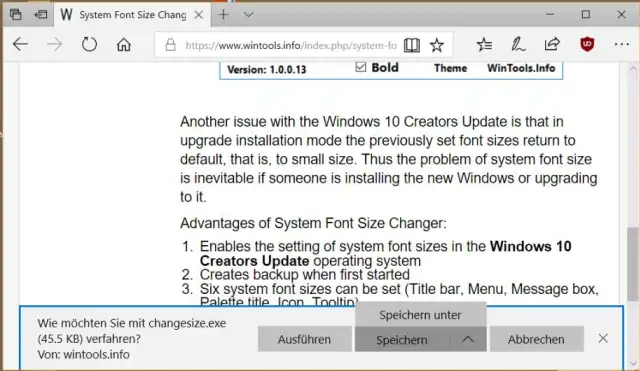 Speichern oder Speichern unter in Edge