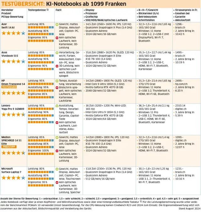 Testübersicht: KI-Notebooks ab 1099 Franken
