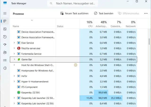 Bild 5: Im Task-Manager sehen Sie, welche Hintergrundprozesse laufen und welche Ressourcen diese benötigen