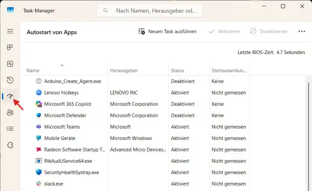 Bild 7: Der Task-Manager listet unter Autostart auf, welche Apps beim Hochfahren des Laptops automatisch starten