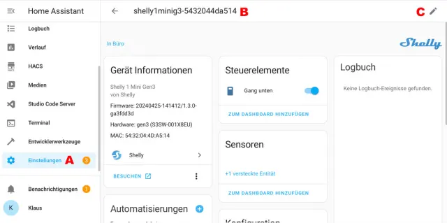 Bevor Sie sich auf irgendetwas anderes in HA einlassen, sollten Sie jedes erkannte Gerät sinnvoll benennen – sofort und ohne Ausnahme. Sie werden sich später auf die Schulter klopfen, weil Sie den Shelly shelly1minig3-5432044da514 gleich nach seiner Einbindung in Licht Decke Garage umbenannt haben.Geräte benennen