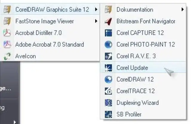 Wie die meisten Programme heutzutage hat auch Corel eine eingebaute Update-Funktion, die es Ihnen als Anwender ermöglichen soll, immer auf dem aktuellen Stand zu bleiben. Standardmässig ist diese Funktion so eingestellt, dass Sie beim Start an Updates erinnert werden. Aber selbstverständlich können Sie die Funktion auch anders konfigurieren - z.B. so, dass die Erinnerung nur jeden Monat einmal erscheint - oder die Erinnerungen ganz abstellen. Diese Einstellung legen Sie im Startmenü fest.