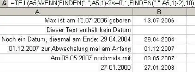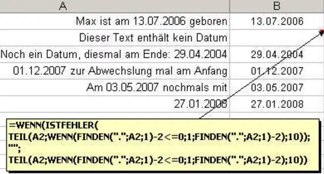 Datum aus Textzelle extrahieren