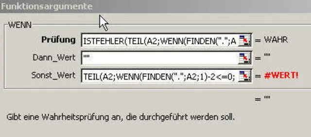 Quelle: PCtipp.ch=WENN(ISTFEHLER(TEIL(A1;WENN(FINDEN(".";A1;1)-2<=0;1;FINDEN(".";A1;1)-2);10));"";TEIL(A1;WENN(FINDEN(".";A1;1)-2<=0;1;FINDEN(".";A1;1)-2);10))