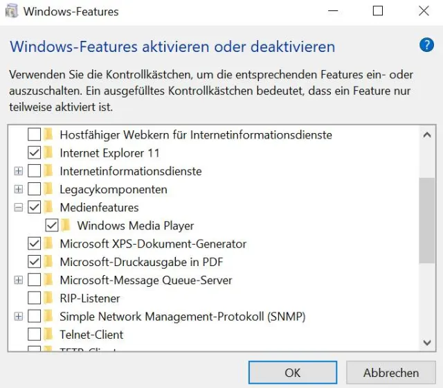 - Entfernen Sie das Häkchen bei Windows Media Player und klicken Sie bei der Hinweismeldung auf Ja.
