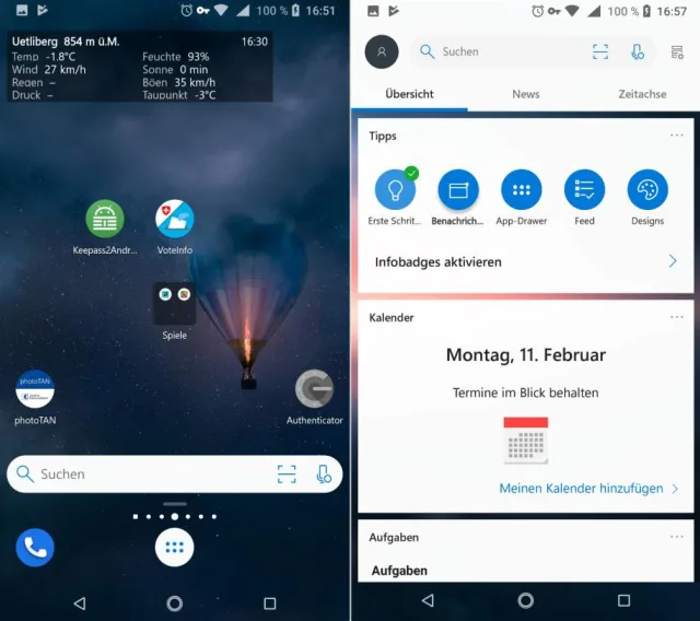 Quelle: PCtipp.chWischen Sie zum ganz linken Bildschirm, landen Sie in einer Art Infozentrale mit Microsoft-Apps. Hier ist auch (noch als Beta-Funktion) die Zeitachse zu finden, die in Windows 10 Einzug gehalten hat. Verknüpfen Sie dieses Android-Handy mit Ihrem Windows-10-PC, können Sie demnächst nahtlos an den Dokumenten weiterarbeiten, die Sie auf Ihrem Computer zuletzt geöffnet hatten.