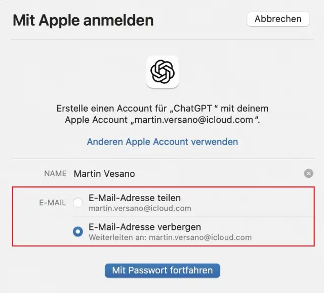 Mit Apple anmelden