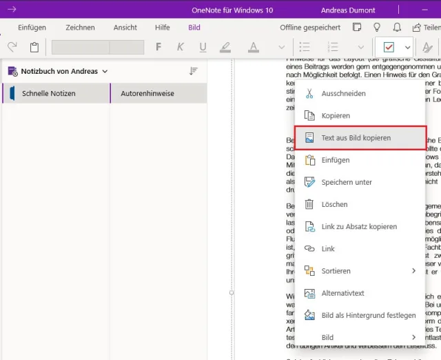 Bild 6: OneNote aus dem Office-Paket von Microsoft unterstützt eine optische Zeichenerkennung