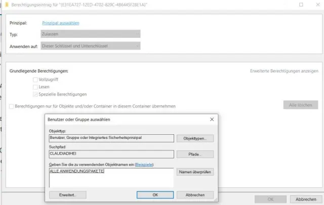 - Im Fenster unter «Geben Sie die zu verwendenden Objektnamen ein» schreiben Sie «alle» und klicken rechts davon auf Namen überprüfen sowie auf OK.