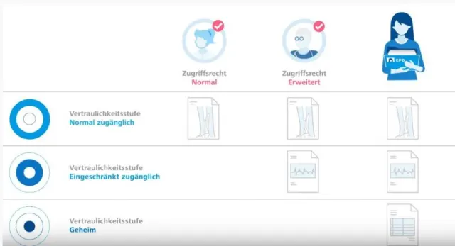 Laut offiziellem eHealth-Suisse-Video können Sie die Dokumente drei verschiedenen Vertraulichkeitsstufen zuordnen: «geheim», «eingeschränkt zugänglich» oder normal zugänglich. Dokumente, die «geheim» sind, können nur Sie einsehen. «Eingeschränkt zugänglich» sind Dokumente, die aus Ihrer Sicht heikel sind und nur z.B. Ärzte mit speziellem Zugriffsrecht einsehen können. «Normal zugänglich» ist für alle anderen Dokumente gedacht.