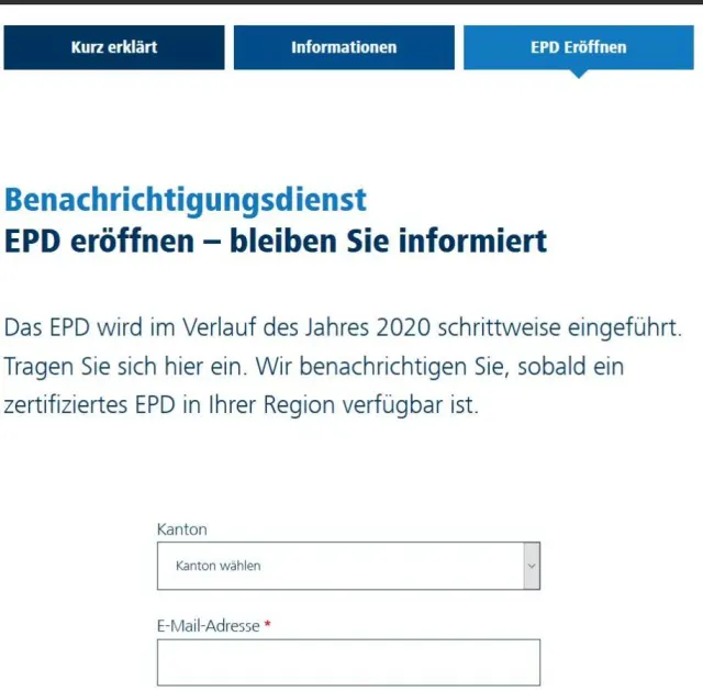 Momentan kann man noch kein EPD eröffnen, aber sich benachrichtigen lassen, wenn es im Wohnkanton soweit ist