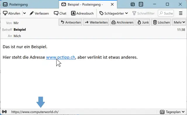 Es steht zwar www.pctipp.ch im Text, aber verlinkt ist www.computerworld.ch. In unserem Beispiel harmlos. Aber mit diesem Trick versuchen Phisher ihre gefährlichen Links zu verschleiern