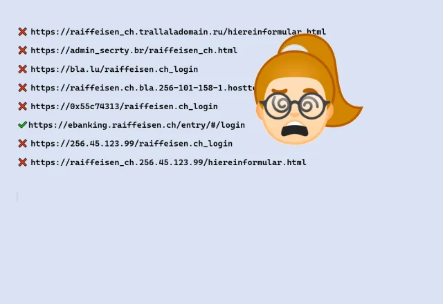 Oder so. Sogar das «.ch» mit Punkt abgetrennt. Aber ist raiffeisen.ch die tatsächliche Domain in diesem Link?