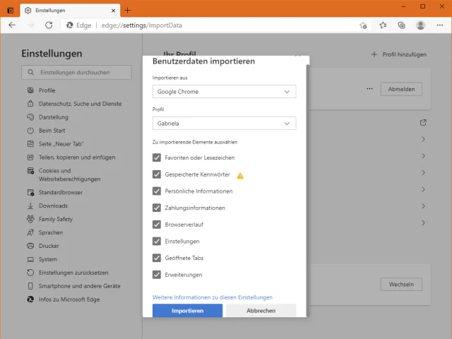 Bild 2: die Importmöglichkeit von Chrome-Daten in Edge