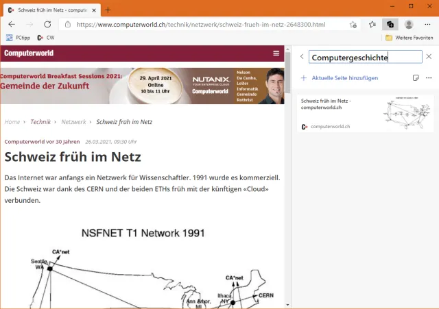 Während Favoriten eher für Seiten dienen, die Sie längerfristig wieder brauchen, tragen Sie in Sammlungen Links zu bestimmten Themen oder Projekten zusammen. Vielleicht gehts um die Recherche zu einem Thema, etwa gesammelte Testresultate angesichts eines Computerkaufs, Bild 5. Oder Sie sammeln Material für einen Vortrag. Klicken Sie aufs Icon Sammlungen (Doppelquadrat mit Pluszeichen) und benutzen Sie Neue Sammlung starten.