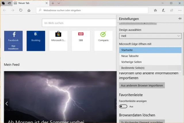 Edge zeigt im neuen Tab verschiedene Elementen