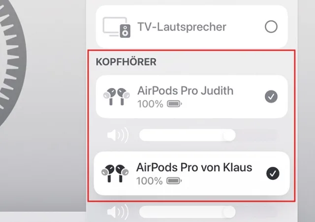 Bild 2: Die Lautstärke lässt sich getrennt regeln, vorzugsweise an den AirPods