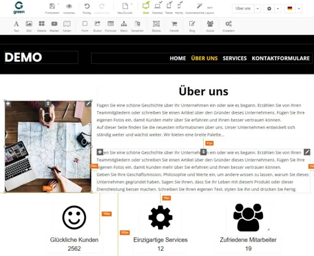 Das von Green.ch angebotene Baukasten-System zum Aufbau der eigenen Webseite ist Bestandteil der Webhosting-Pakete. Die Preise beginnen für das «S»-Paket bei Fr. 8.90 und enden bei Fr. 24.90 für die XL-Variante. Inbegriffen sind in jedem Paket ein Webspeicher und Datenbanken, Domains sowie auch Mailspeicher und -konten. Der Baukasten beinhaltet rund 200 Designvorlagen. Unterstützt werden auch mobile Endgeräte wie Tablets oder Handys mit speziellen Templates, die auf einem responsiven Design basieren. Der Editor ist dabei jederzeit transparent gehalten und bietet typische Drag&Drop-Funktionen, um etwa Textkästen, aber auch Erweiterungen frei auf der Webseite zu platzieren.