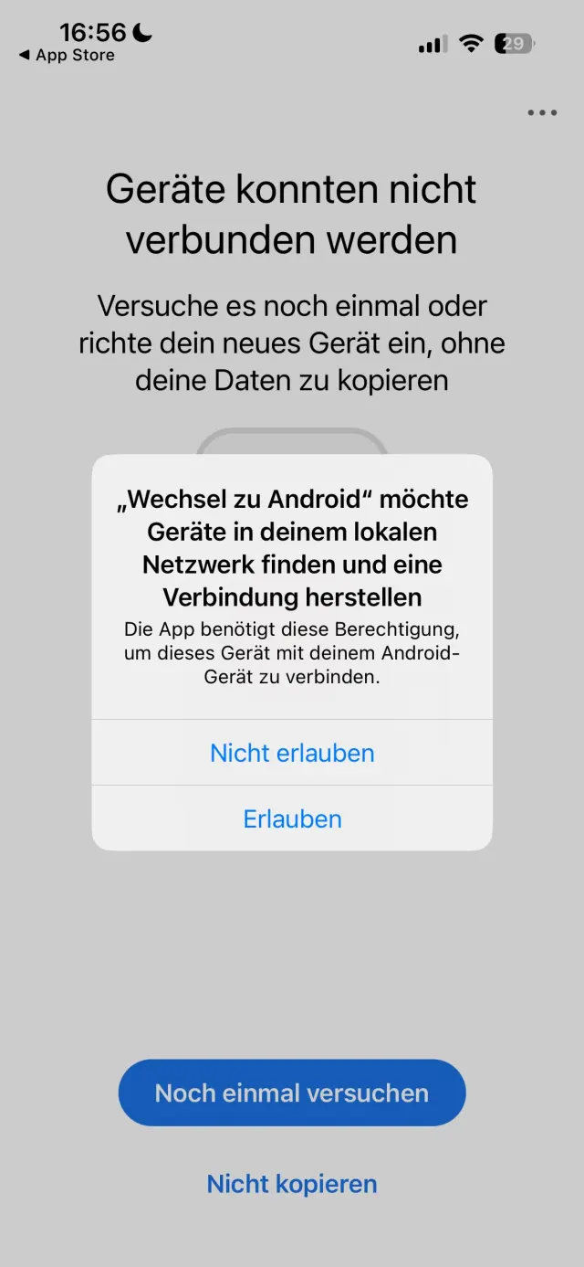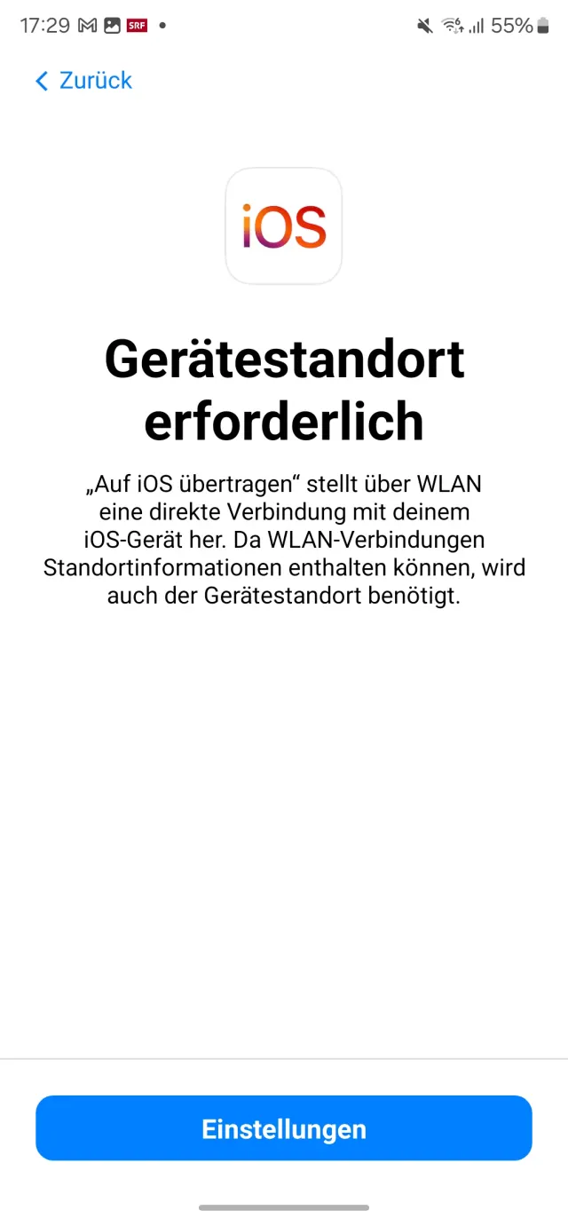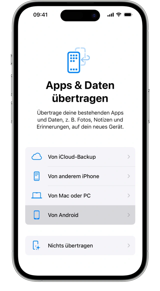 Richten Sie Ihr neues iPhone auf keinen Fall ein, bevor Sie die Daten Ihres Android-Smartphones übertragen haben. Andernfalls müssen Sie es leider zurücksetzen, um die Übertragung von Android automatisch durchzuführen. Das gilt auch dann, wenn Sie Ihr iPhone ohne Nutzerkonto eingerichtet haben.