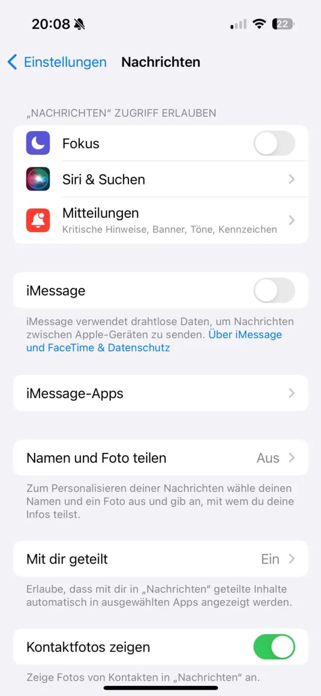 Quelle: PCtipp.chPrüfen Sie bei Ihrem iPhone ausserdem, dass es auf dem neuesten Stand ist. Sind Sie unsicher, ob das der Fall ist? Gehen Sie in die Einstellungen und dort zum Punkt Allgemein/Softwareupdate. Ausserdem müssen Sie die App iMessage deaktivieren. Navigieren Sie zu Einstellungen/Nachrichten und schalten Sie dort die Option iMessage aus, Bild 12.