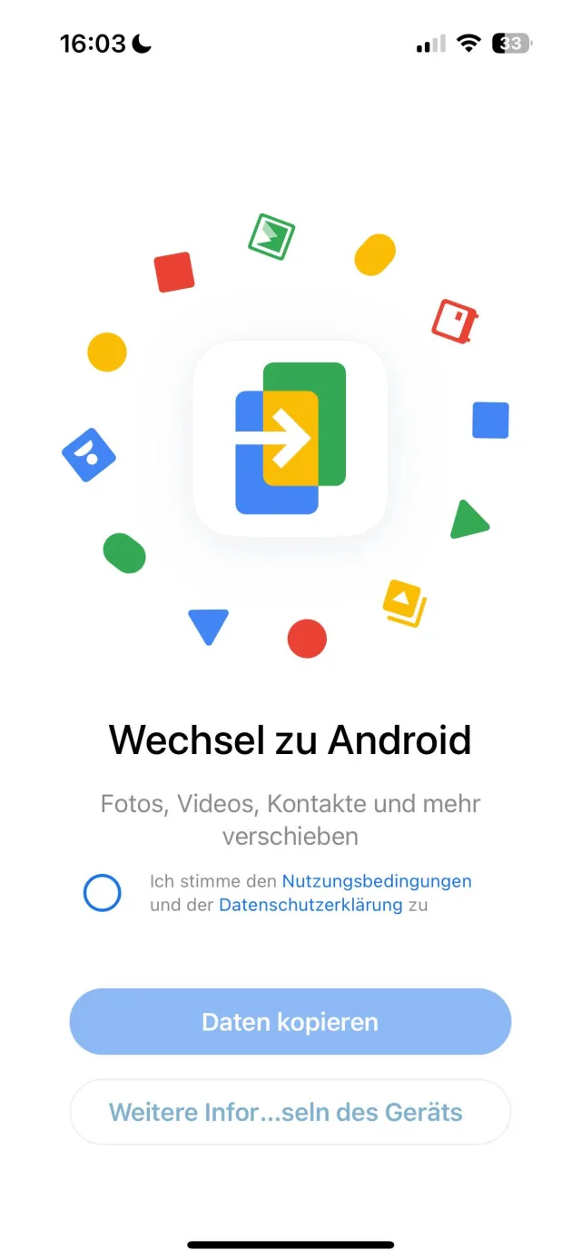 Sie wollten schon lange zu einem Android-Handy wechseln, haben aber den Transfer gescheut? In diesem Fall können wir Sie beruhigen: Während es vor einigen Jahren tatsächlich noch etwas umständlich war, ist der Prozess heute einfacher denn je. Kontakte, Daten, Videos und selbst Kalendereinträge lassen sich in wenigen Schritten übertragen.Das liegt daran, dass es inzwischen spezielle Apps gibt, die den Umstieg selbst für Laien einfach gestalten. Seit einigen Monaten gibt es sogar ein Tool von Google namens Wechsel zu Android. Dieses wird aktuell von mehr als 6000 Android-Geräten unterstützt. In dieser Anleitung konzentrieren wir uns daher auf den Wechsel von iOS zu Android mithilfe dieser offiziellen App, die Sie unter der Internetadresse go.pctipp.ch/3333 in Apples App Store finden. Die müssen Sie allerdings noch nicht herunterladen. Sie werden in der folgenden Anleitung automatisch zur App geführt.