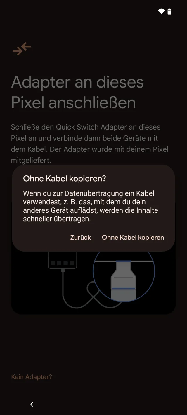 Bild 19: Wir entscheiden uns für einen Transfer ohne Kabel