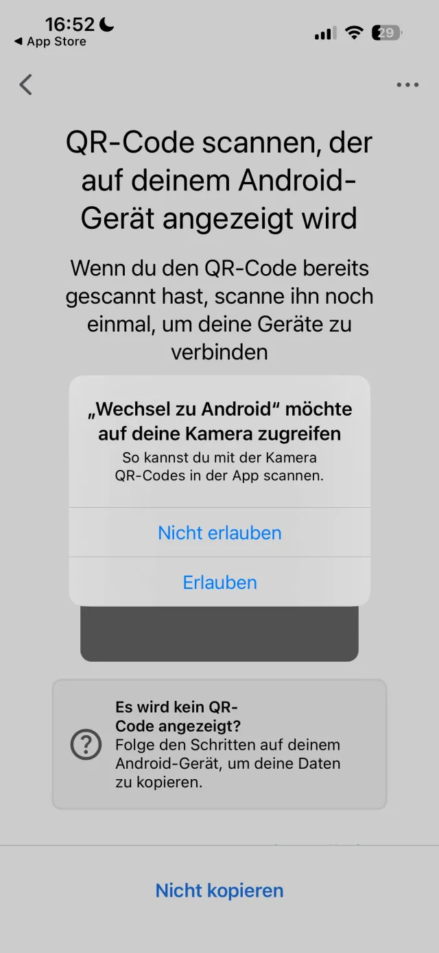 Scannen Sie mit der iPhone-Kamera den QR-Code, den Ihr Android-Phone anzeigt. Sie werden direkt zur App Wechsel zu Android im App Store weitergeleitet. Installieren Sie die Software, Bild 20.