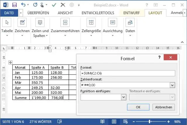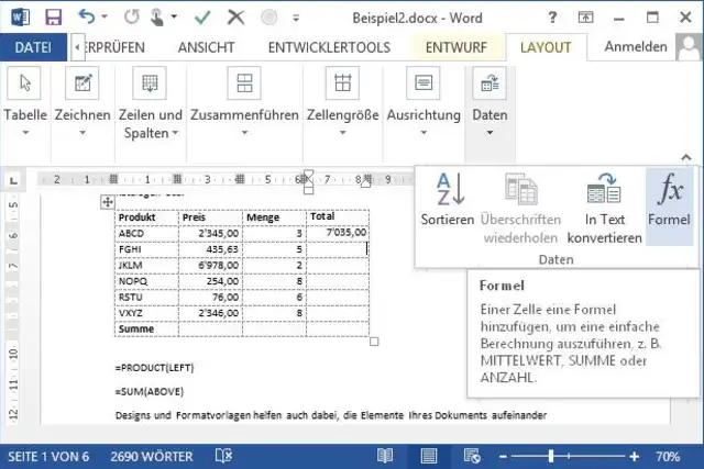 Einfache Berechnungen in Word 2013