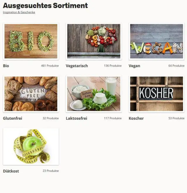 Hier fehlte uns ein bisschen die Filterfunktion auf einen Blick. Allerdings gibt es sie ebenfalls, einfach via Inspiration und Geschenke, dann findet man sie unter Ausgesuchtes Sortiment (Bio, vegetarisch, glutenfrei und Co.).