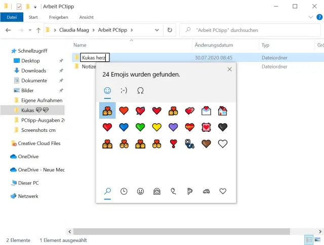 Emojis im Datei- oder Ordnernamen verwenden