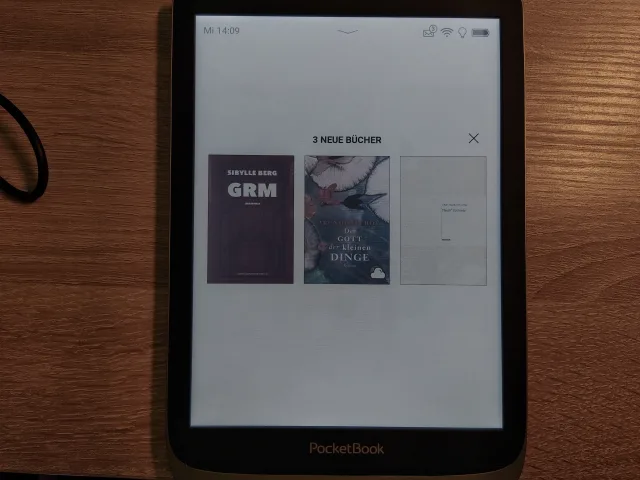 Drei bei Orell Füssli gekaufte E-Books (zwei EPUB-Dateien, eine PDF-Datei) auf dem PocketBook InkPad Color