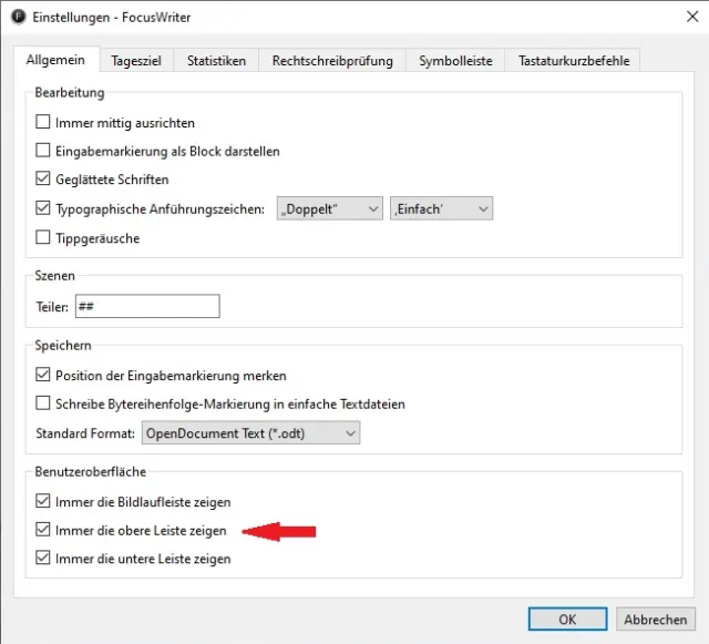 Ferner bietet Focus Writer Echtzeitstatistiken, Tagesziele und eine Rechtschreibprüfung für zahlreiche Sprachen. Das Tool unterstützt die Formate TXT, RTF, DOCX und ODT.
