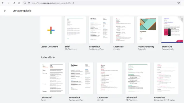 Bild 10: Zahlreiche Vorlagen etwa für Briefe und Lebensläufe erleichtern den Einstieg in Google Docs