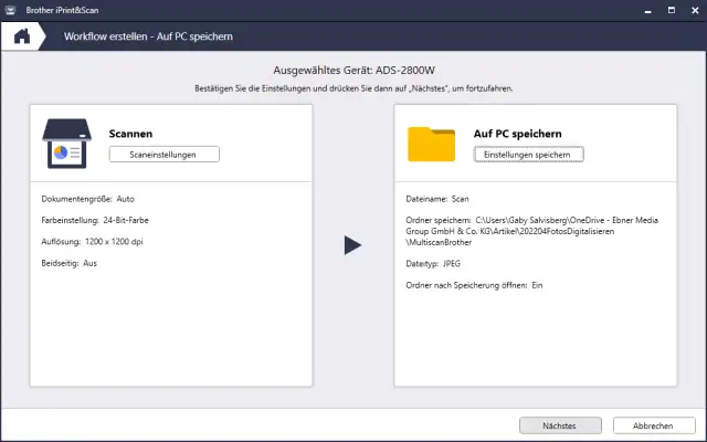 Bild 6: Beispiel der Scan-Software von Brother mit Workflow-Unterstützung