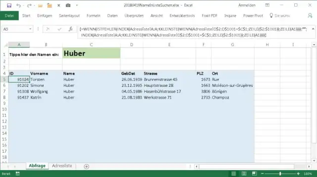 Quelle: PCtipp.chErstellen Sie ein separates Blatt, z.B. namens «Abfrage». Das Blatt, das die Adressen enthält, heisst «Adressliste». Auf dem Abfrage-Blatt wollen Sie in der Zelle C1 den Namen eintippen. Darunter (von A4 bis z.B. maximal G22) sollen automatisch alle Datensätze von Kunden mit diesem Namen erscheinen.