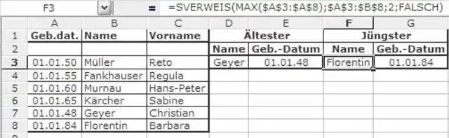 Excel: Ältesten und jüngsten Geburtstag ermitteln