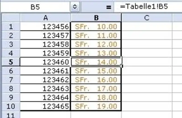 Wechseln Sie auf "Tabelle2" (oder auf die zweite Tabelle, die Sie für das Dazuspielen der Preise verwenden wollen) und tragen Sie anstelle der Preise aus Tabelle 1 die Verknüpfung der Felder mit den entsprechenden Feldern aus Tabelle 1 ein, also z.B. für Feld B1 "=Tabelle1!B1" usw. Nach dem Eintrag in B1 können Sie die restlichen Einträge mit "AutoAusfüllen" herunterziehen.