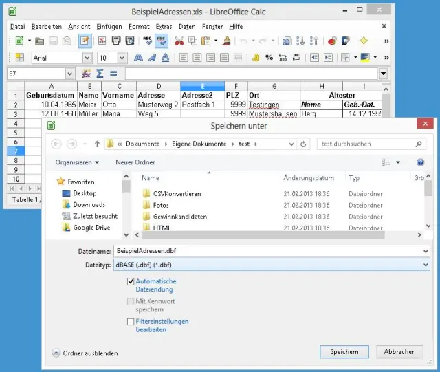LibreOffice Calc kann Dateien als DBF-Dateien speichern