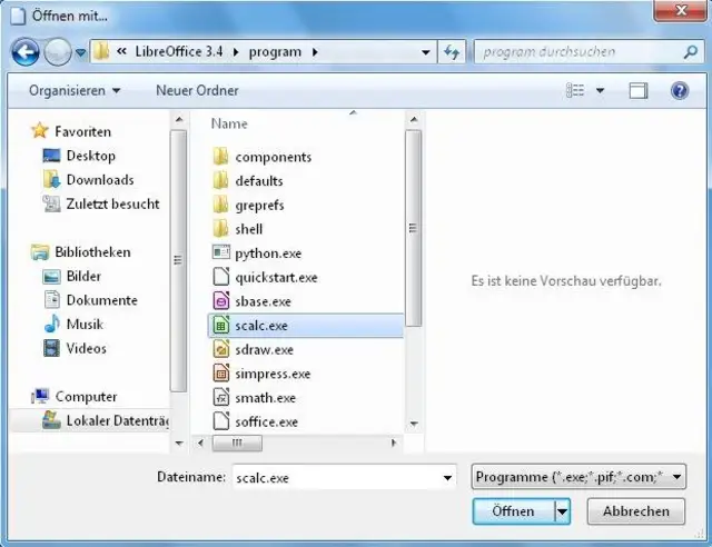 Der Weg zur Calc-Programmdatei