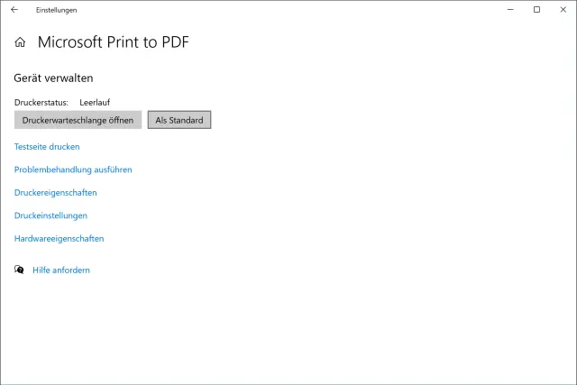 Jetzt ist Microsoft Print to PDF der Standarddrucker